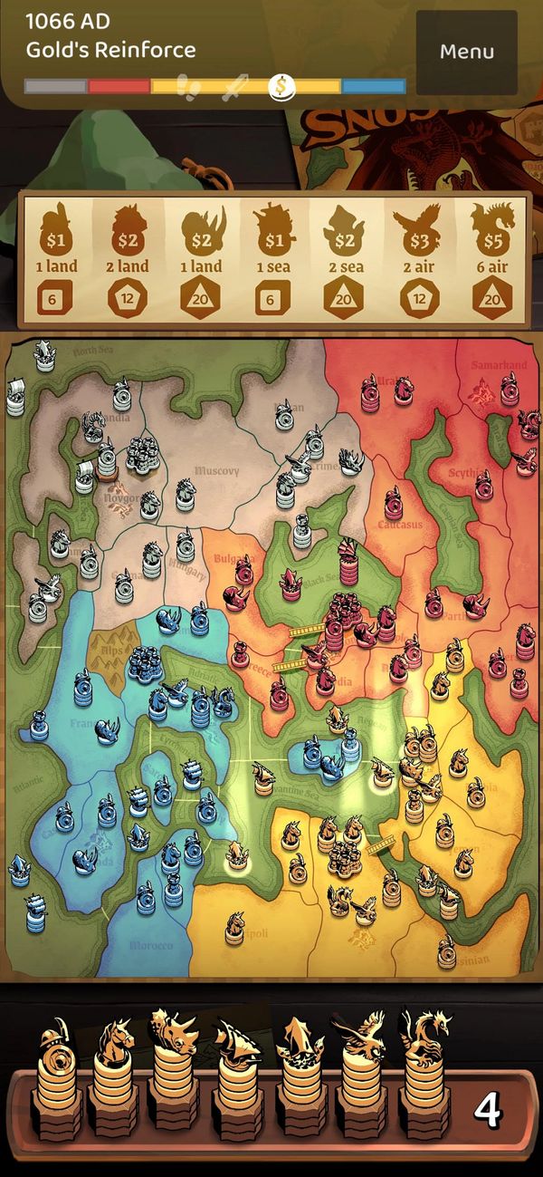 Dragons of 1066 is a classic, turn-based fantasy board game for 2-4 players in online or local play. Gather your friends and fight The War for Mythic Europe in real-time or asynchronous battle. Plan your strategy, recruit your armies, risk it all in a throw of the dice for victory.